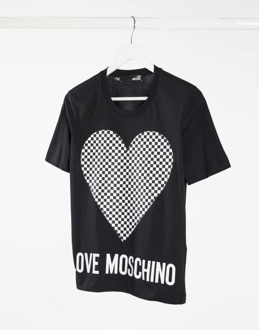 Love Moschino - T-shirt nera con logo e cuore a scacchi | ASOS